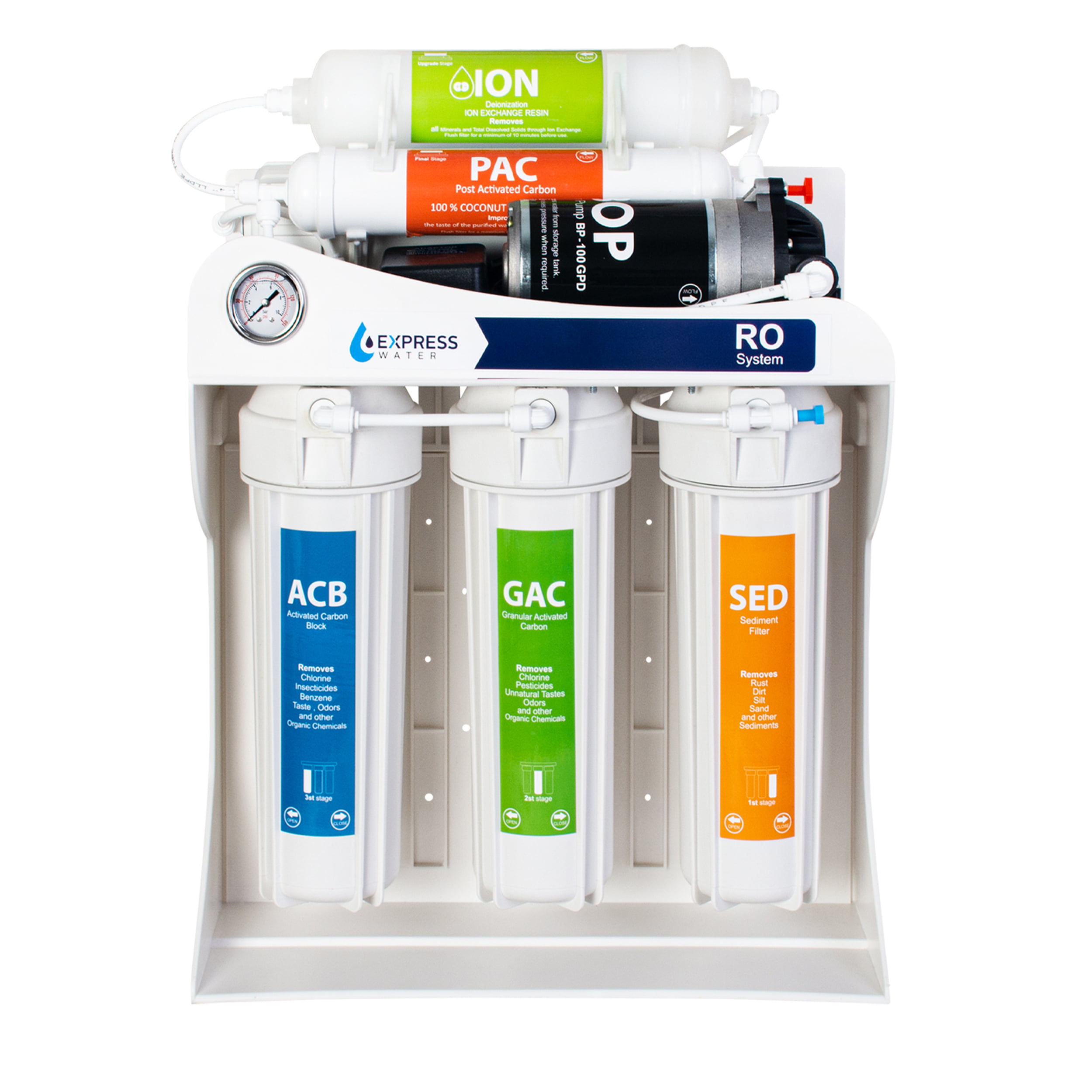 دستگاه تصفیه آب خانگی 6 مرحله ای با برند معتبر اکسپرس واتر به روش اسمز معکوس (RO) عمل کرده و  جدیدترین و به روزترین تکنولوژی در فرآیند دستگاههای تصفیه آب خانگی (ساخت کشور تایوان) می باشد.