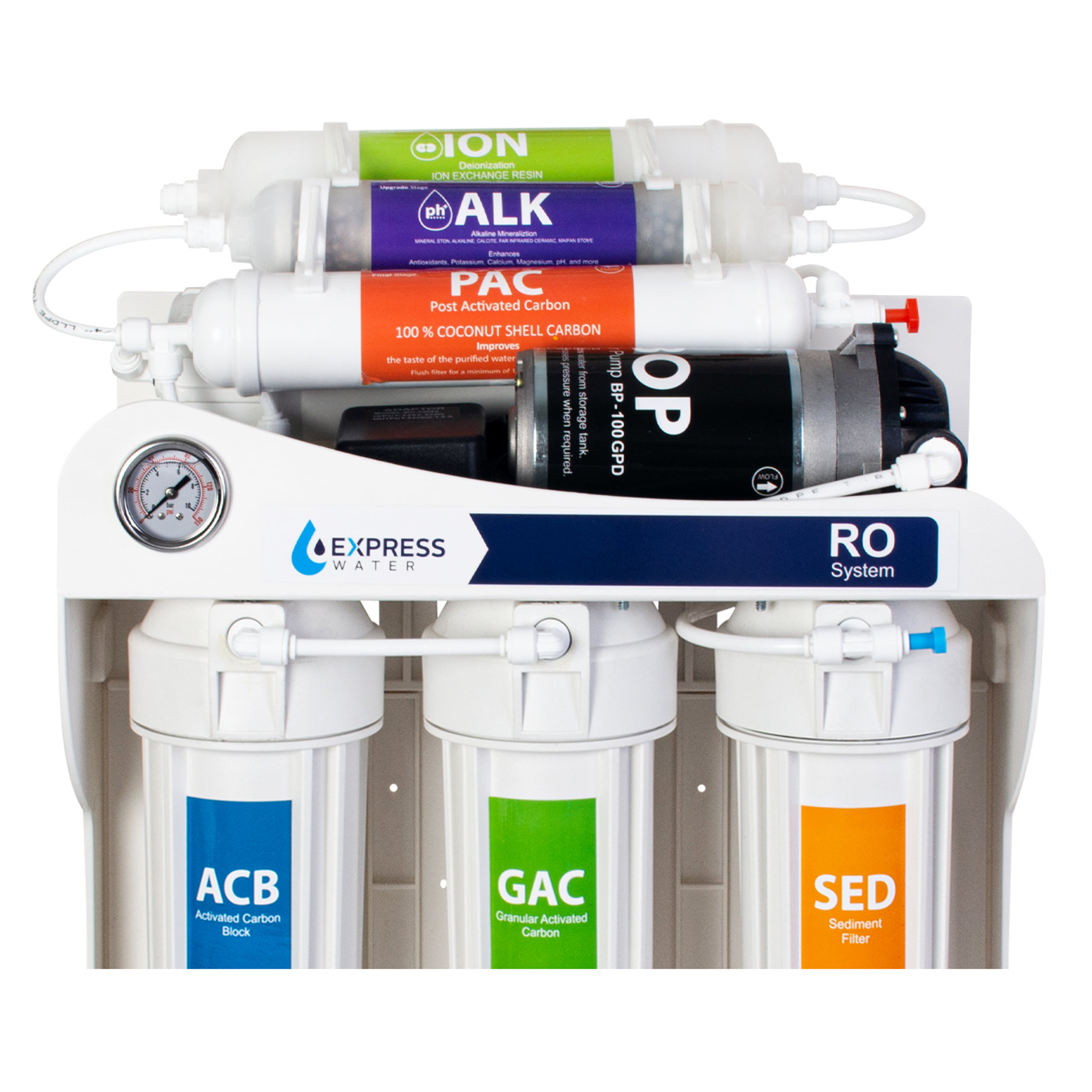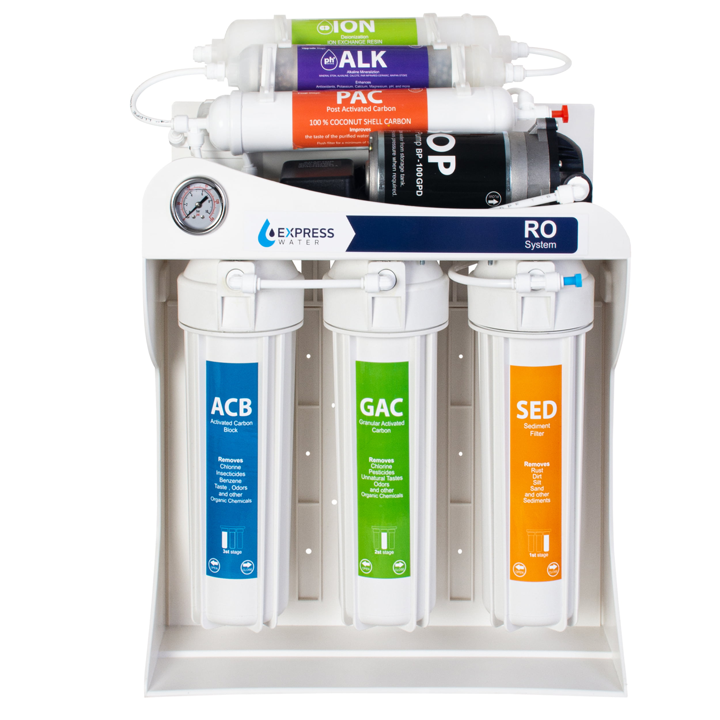 دستگاه تصفیه آب خانگی 7 مرحله ای با برند معتبر اکسپرس واتر به روش اسمز معکوس (RO) عمل کرده و جدیدترین و به روزترین تکنولوژی در فرآیند دستگاههای تصفیه آب خانگی (ساخت کشور تایوان) می باشد.