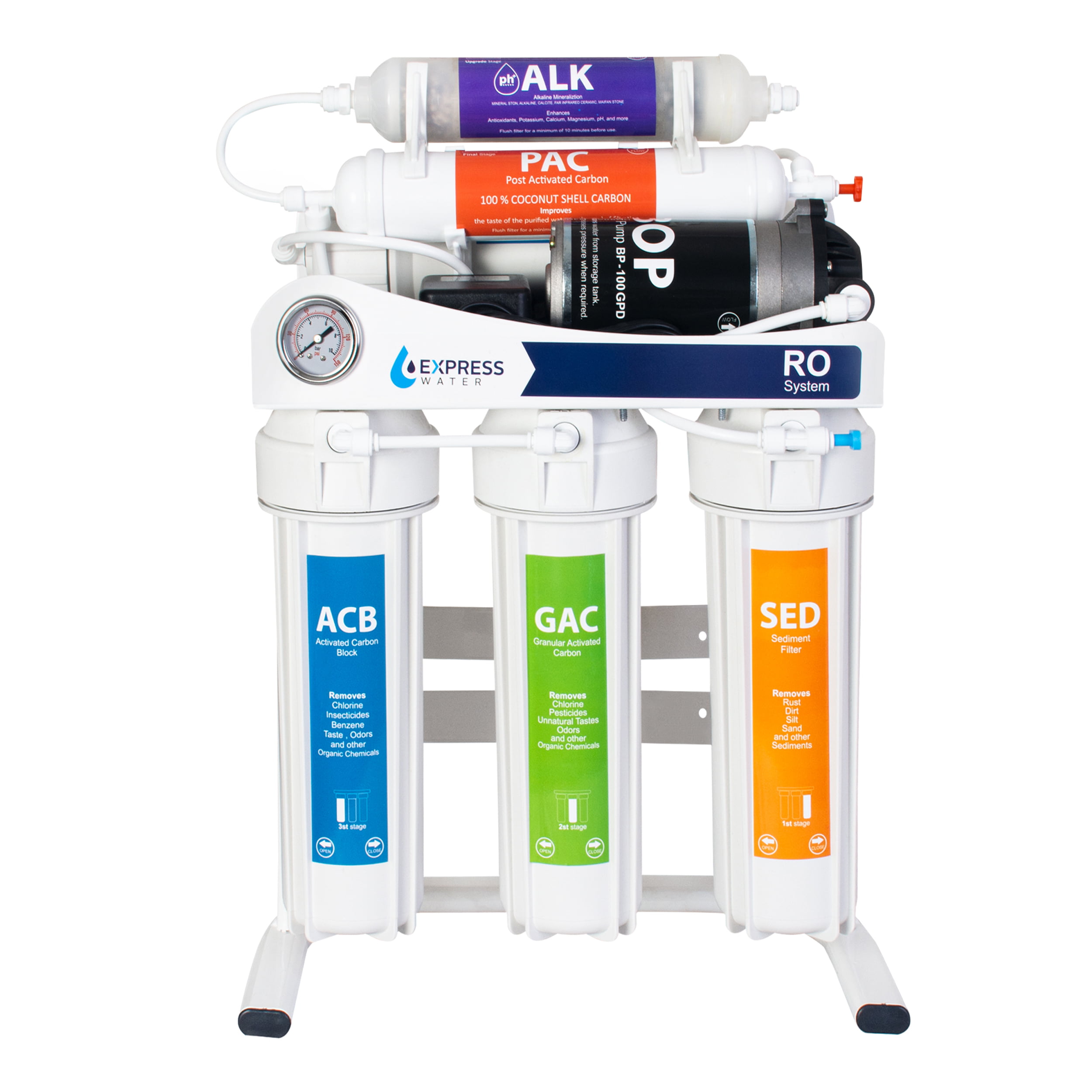 دستگاه تصفیه آب خانگی 6 مرحله ای با برند معتبر اکسپرس واتر به روش اسمز معکوس (RO) عمل کرده و جدیدترین و به روزترین تکنولوژی در فرآیند دستگاههای تصفیه آب خانگی (ساخت کشور تایوان) می باشد.