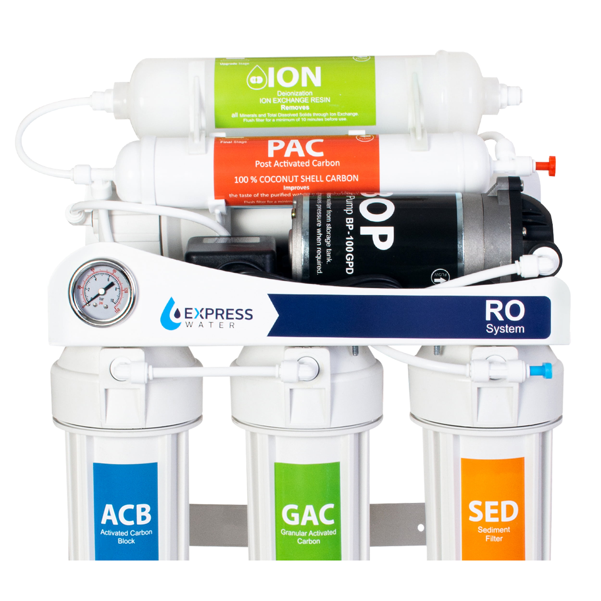 دستگاه تصفیه آب خانگی 6 مرحله ای با برند معتبر اکسپرس واتر به روش اسمز معکوس (RO) عمل کرده و جدیدترین و به روزترین تکنولوژی در فرآیند دستگاههای تصفیه آب خانگی (ساخت کشور تایوان) می باشد.